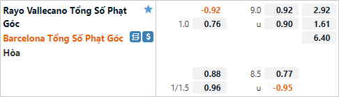 AEGoal soi kèo tổng bàn thắng và kèo phạt góc trận đấu giữa Vallecano vs Barcelona diễn ra lúc 00h00 ngày 28/10 trong khuôn khổ giải VĐQG Tây Ban Nha