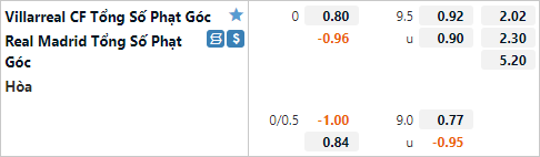 Tỷ lệ tài xỉu phạt góc của trận đấu được công khai ở mức 9 1/2 cả trận. Đây là mức tài xỉu tương đối cao so với mặt bằng chung của các trận đấu thuộc La Liga diễn ra hôm nay, mức tài xỉu cao này hợp lý với dự đoán trận đấu sẽ diễn ra với kịch bản kém sôi nổi. 5 cuộc đối đầu gần nhất của hai đội đã không có nhiều hơn 9 tinh huống phạt góc 1 trận nhưng rất có thể sẽ có kết quả khác biệt trận đấu này khi nhà cái châu Á duy trì tỷ lệ tài xỉu phạt góc ở mức cao như hiện tại.