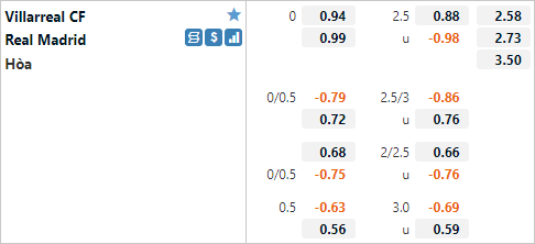 Phía bên kia Real Madrid đã có những dấu hiệu chững lại sau giai đoạn có phong độ tốt, đội khách đã thua kèo châu Á 5/6 trận đấu gần nhất. Việc ghi bàn với Real Madrid đang trở nên rất khó khăn khi tiền đạo chủ lực Karim Benzema không thể thi đấu do chấn thương, đội bóng hoàng gia chỉ ghi được 3 bàn ở 4 trận đấu gần nhất. Mặt khác theo thống kê thì có tới 4/5 trận đấu gần nhất của Real Madrid đều kết thúc với ít hơn 3 bàn thắng. Rất có thể trận đấu này cũng sẽ có kết quả tương tự khi Real Madrid hiện tại cũng không quá vượt trội để áp đặt lối chơi khi làm khách của Villarreal. Lựa chọn cửa xỉu có thể sẽ là một lựa chọn tốt.