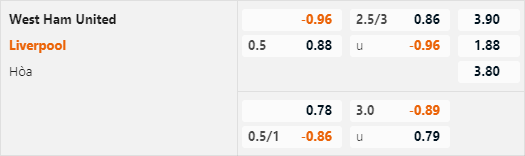 Trong khi đó Liverpool đã có những chuyển biến tích cực giai đoạn này chỉ thua kèo 1/4 trận gần nhất. Họ đã ghi tới 9 bàn thắng ở 2 trận đấu gần nhất nhưng đó là khi the Kop đối đầu với những đội bóng có hàng thủ không tốt như Leeds hay Nottingham. Chắc chắn việc đối đầu với West Ham trận này sẽ có những khách biệt, nhất là khi đội chủ nhà đang có phong độ tương đối ổn định.