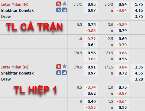 Shakhtar Donetsk đang có phong độ ấn tượng tại Europa League với tỷ lệ thắng kèo là 100% sau khi tham dự 5 trận đấu. Nhưng nếu chỉ tính thành tích trong hiệp 1 thì đại diễn Ukraine có thành tích khiêm tốn hơn đối thủ khi chỉ thằng kèo hiệp 1 được 3 trong tổng số 6 trận đấu gần nhất được cộng khai trên sàn giao dịch châu Á. Inter Milan là đối thủ khó nhất của Shakhtar Donetsk tính cho tới thời điểm này. Với lối chơi chắc chắn của HLV Conte thì đây sẽ là một trận đấu không mấy dễ dàng cho Shakhtar Donetsk, xét về lực lượng hiện tại thì Inter Milan hoàn toàn đủ khă năng chiếm ưu thế trước đối thủ ở ngay trong hiệp đấu đầu tiên.