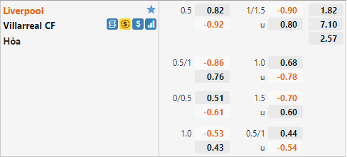 Villarreal phải thi đấu sân khách trong cuộc đối đầu với Liverpool trong khuôn khổ trận bán kết lượt đi UEFA Champions League diễn ra đêm nay. Với lợi thế sân nhà Liverpool đang được nhà cái châu Á đánh giá rất cao với tỷ lệ chấp 1 1/2 trên sàn giao dịch châu Á.