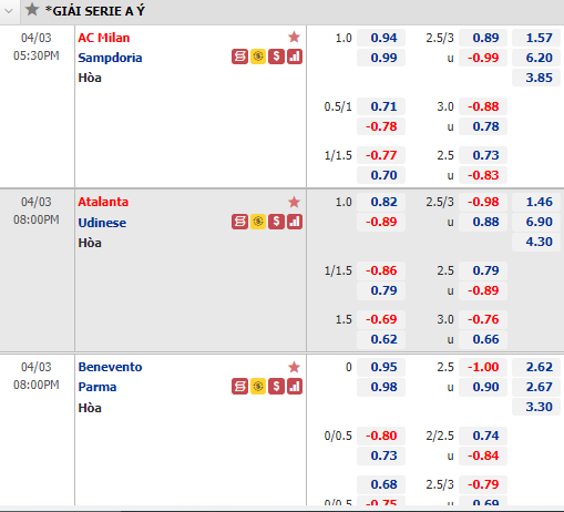 AEGoal cung cấp thông tin lịch thi đấu, tỷ lệ và cục diện giải VĐQG Italia - Serie A trước vòng 29.