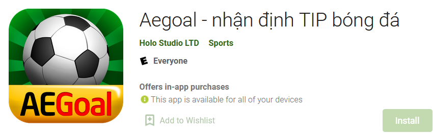 Cài đặt ứng dụng AEGOAL mới nhất để xem Tip thuận tiện chính xác nhất