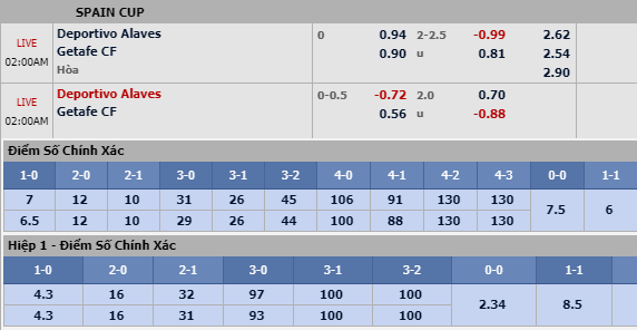 Đại diện đến từ Madrid không phải lo lắng quá nhiều cho khả năng rơi xuống nhóm nguy hiểm nhưng cũng quá ít cơ hội tranh chấp thứ hạng nên Cúp Nhà Vua là nơi lý tưởng nhất để họ nghĩ đến khả năng tiến sâu giành vị trí cao. Hay nói thẳng ra, Alaves có thể sẽ buông bỏ Cúp Nhà Vua với quá nhiều khó khăn bủa vây tại La Liga như vậy. Sự khác nhau về động lực thi đấu cũng như hoàn cảnh hiện tại khiến các nhà cái cũng công khai quan điểm với tỷ lệ chính chỉ dừng ở mức 0:0. Chưa khi nào trong lịch sử đối đầu lại chứng kiến Alaves không ở kèo trên như trận đấu đêm nay.
