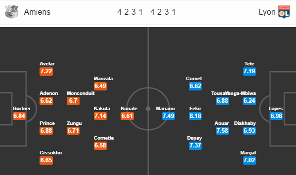 Sư tử vùng sông Rhone không còn nỗi sợ mỗi khi xa nhà. 4 trận sân khách gần nhất tại Ligue 1, Lyon đều giành chiến thắng cả về chuyên môn lẫn tỷ lệ. Thậm chí 3 trận trong số đó họ còn vùi dập đội chủ nhà đều với tỷ số 5-0. Có trong tay đầy đủ nhân tố chủ chốt, Lyon đủ sức vượt qua Amiens ở trận đấu này.