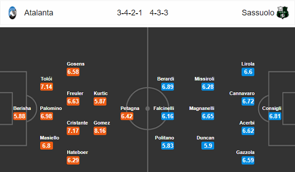 Về phía Sassuolo, họ cũng thua kèo 3 trận liên tiếp tại Serie A gần đây nhưng 2 trong số đó đến khi Sassuolo làm khách trước Torino – đối thủ kỵ dơ với họ. Cũng như Atalanta, những bản hợp đồng mới của Sassuolo chưa thể hòa nhập cùng các đồng đội. 2 vòng đầu tiên, các chân sút của Sassuolo đều bất lực trong việc tìm đường vào khung thành đối phương.