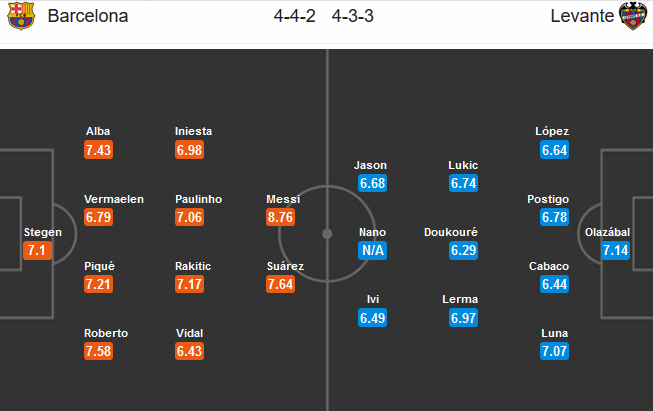Những con số điên rồ ấy đủ để cho thấy sức tàn phá của Barcelona khủng khiếp như thế nào khi được cổ vũ tinh thần từ 4 phía khán đài. Và sớm muộn, Levante cũng sẽ là nạn nhân tiếp theo phải bước lên “giàn hỏa thiêu” tại thánh địa Nou Camp mà thôi. Bên kia chiến tuyến, Levante đang phải chật vật kiếm điểm để tách xa khỏi nhóm rớt hạng mùa này. Hiện tại, đội bóng thành phố Valencia đang đứng thứ 16 trên bảng tổng kết và chỉ xếp trên nhóm “cầm đèn đỏ” vỏn vẹn 3 điểm. Kết quả này cũng chẳng có gì đáng ngạc nhiên khi nhìn vào thống kê phong độ của thầy trò Juan Muniz trong thời gian qua.
