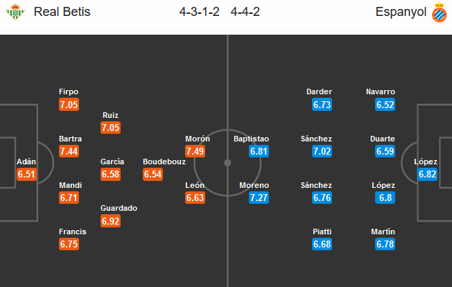 Thử thách cho họ tại vòng 29 là Espanyol, đội bóng đang giữ mạch bất bại qua 7 vòng đấu gần nhất ở La Liga. Nhà cái chỉ áp độ chấp – 1/4 cho đội chủ nhà trận này cùng thang điểm ăn cao cho thấy giới chuyên môn không mấy tin tưởng vào cửa thắng của đội chủ nhà. Điều này xuất phát từ việc Betis đã để thua ở cả 3 lần đối đầu gần nhất với Espanyol.