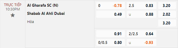 Tỷ lệ kèo Al-Gharafa SC vs Shabab Al Ahli Club