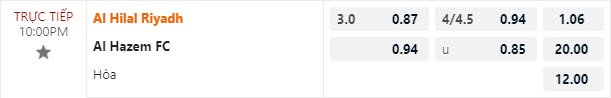 Tỷ lệ kèo Al-Hilal vs Al-Hazem