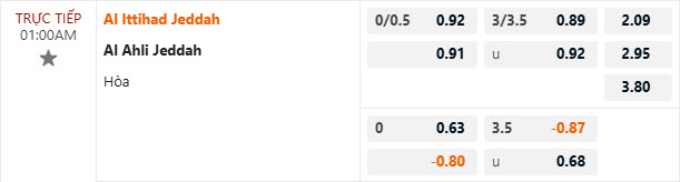 Tỷ lệ kèo Al Ittihad Jeddah vs Al-Ahli Saudi