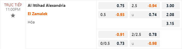 Tỷ lệ kèo Al Ittihad vs Zamalek