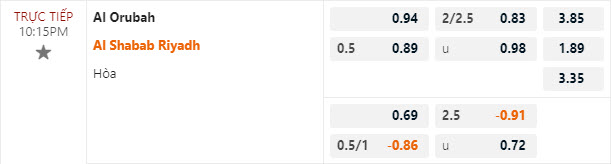 Tỷ lệ kèo Al-Orobah vs Al-Shabab