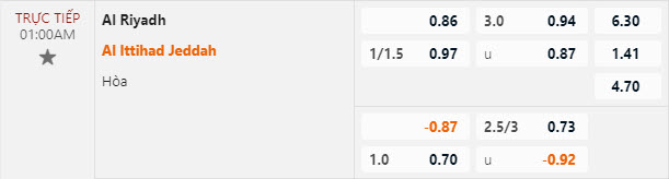 Tỷ lệ kèo Al-Riyadh vs Al Ittihad Jeddah