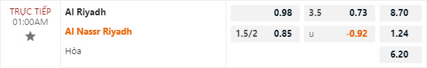 Tỷ lệ kèo Al-Riyadh vs Al-Nassr
