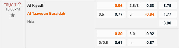Tỷ lệ kèo Al-Riyadh vs Al Taawon