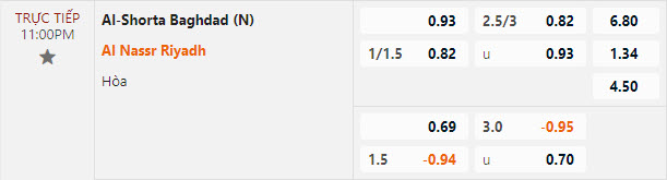 Tỷ lệ kèo Al Shorta vs Al Nassr