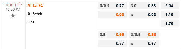 Tỷ lệ kèo Al-Tai vs Al-Fateh