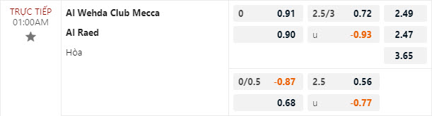 Tỷ lệ kèo Al-Wehda FC vs Al-Raed
