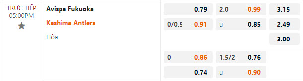 Tỷ lệ kèo Avispa Fukuoka vs Kashima Antlers