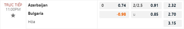 Tỷ lệ kèo Azerbaijan vs Bulgaria
