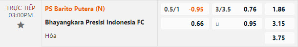 Tỷ lệ kèo Barito Putera vs Bhayangkara