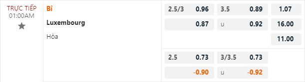 Tỷ lệ kèo Bỉ vs Luxembourg
