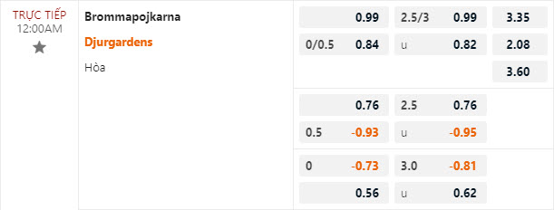 Tỷ lệ kèo Brommapojkarna vs Djurgardens