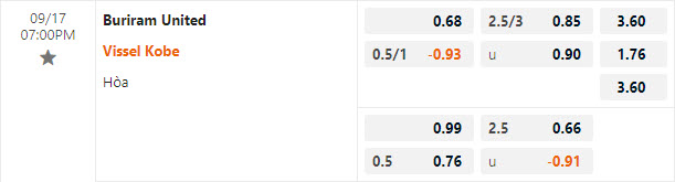 Tỷ lệ kèo Buriram United vs Vissel Kobe