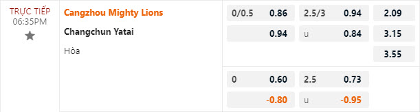 Tỷ lệ kèo Cangzhou Mighty vs Changchun YaTai