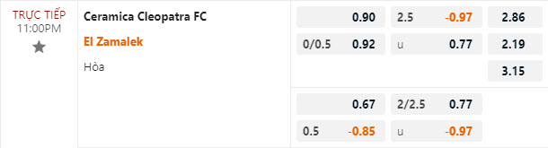 Tỷ lệ kèo Ceramica Cleopatra vs Zamalek
