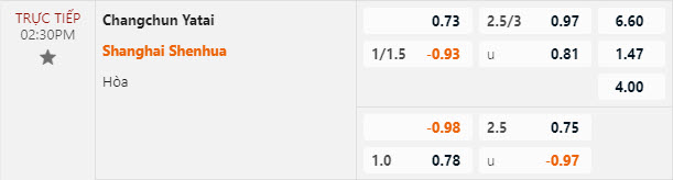 Tỷ lệ kèo Changchun YaTai vs Shanghai Shenhua