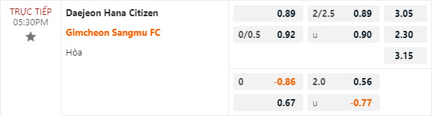 Tỷ lệ kèo Daejeon Hana Citizen vs Gimcheon Sangmu
