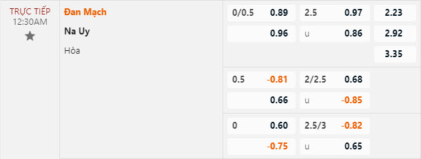 Tỷ lệ kèo Đan Mạch vs Na Uy