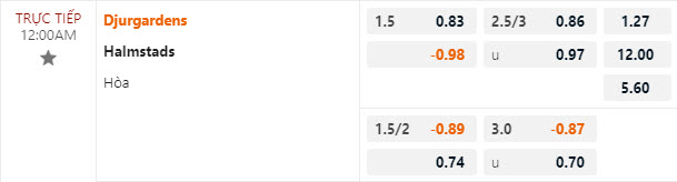 Tỷ lệ kèo Djurgardens vs Halmstads