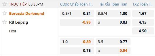 Tỷ lệ kèo Dortmund vs RB Leipzig