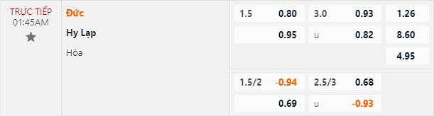 Tỷ lệ kèo Đức vs Hy Lạp