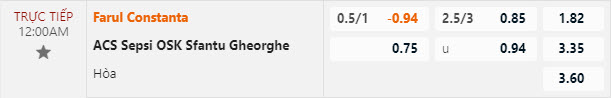 Tỷ lệ kèo Farul vs Sepsi