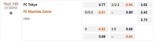 Tỷ lệ kèo FC Tokyo vs Machida Zelvia