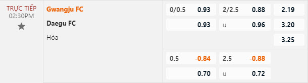 Ở cả 2 trận sân nhà từ đầu mùa, Gwangju đều cho thấy hiệu quả ghi bàn cao của mình, tuy nhiên ở trận đấu tới đây, khả năng họ làm được điều tương tự là không nhiều khi đối thủ cũng đang cho thấy rõ xu hướng chơi thiên về phong ngự của mình. Trên thị trường, nhà cái cũng chỉ xếp kèo Tài Xỉu không quá nổi bật là 2 hoà, vì thế mốc dưới là lựa chọn ở đây.