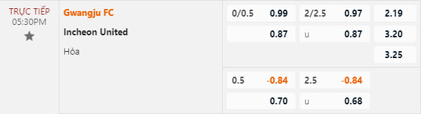 Tỷ lệ kèo Gwangju vs Incheon