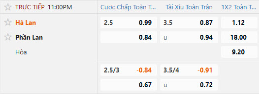 Tỷ lệ kèo Hà Lan vs Phần Lan