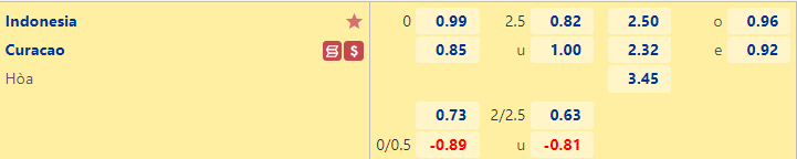 Dù vậy, sự chuyển dịch kèo đang cho thấy niềm tin vào cửa Indonesia. Ở thời điểm mở kèo, nhà cái để Curacao chấp -1/4 (như trận lượt đi) nhưng tới thời điểm sáng 27/9, tỷ lệ trên đã về 0:0. Rõ ràng Indonesia đang nhận được cái nhìn khác sau khi chiến thắng ở lượt đi. Họ cũng đang đạt trạng thái vào phom với phong độ tốt trong thời gian qua khi thắng kèo trong 4 trận liên tiếp.