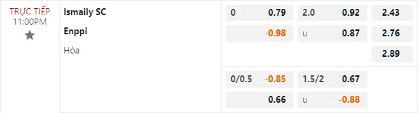 Trên sân nhà, Ismaily đang chưa mang đến nhiều niềm tin chiến thắng khi chỉ thắng 1, hòa 2 và thua 3 theo handicap ở 6 lần đón khách gần đây. Đội chủ nhà cũng thua kèo cả 2 lần đối đầu ENPPI gần nhất. Bên phía đối diện, ENPPI thắng kèo cả 3 trận vừa qua và 5/6 chuyến xa nhà gần nhất.