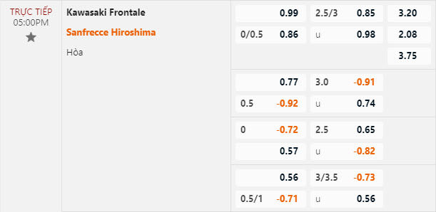 Tỷ lệ kèo Kawasaki Frontale vs Hiroshima Sanfrecce