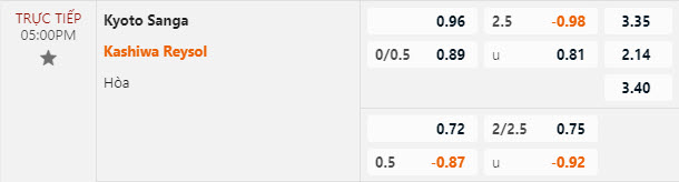 Tỷ lệ kèo Kyoto Sanga vs Kashiwa Reysol