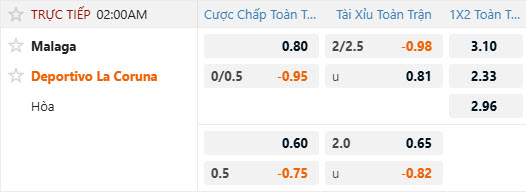 Ở thế cửa dưới Malaga đang nhận được nhiều sự tin tưởng khi bất bại 9/10 trận sân nhà gần đây. 10 lần gần nhất làm khách trên sân của Malaga, Deportivo cũng chỉ thắng 1 trận (thua 6, hòa 3).