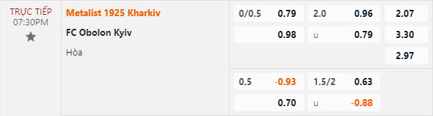 Tỷ lệ kèo Metalist Kharkiv vs Obolon Kyiv