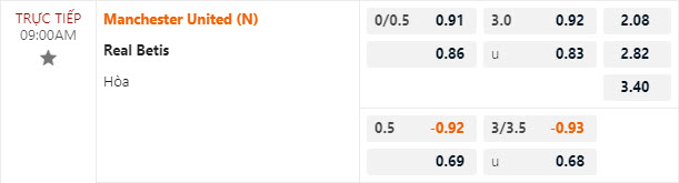 Tỷ lệ kèo MU vs Real Betis